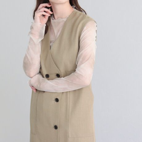 ・フロントボタンを閉じてジャンパースカートとして、開けてジレとして2WAYで楽しむことが出来ます