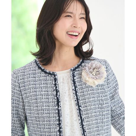 まるでブーケのようなデザインが魅力のコサージュです。配色になっているので、高級感があり上品な印象です。存在感があるので、シンプルなコーディネートが一気に華やぎます。留め具は安全ピンだけでなくクリップが付いているので、大切なお洋服に穴をあけてしまう心配もありません。