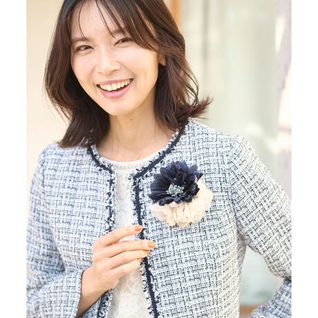 まるでブーケのようなデザインが魅力のコサージュです。配色になっているので、高級感があり上品な印象です。存在感があるので、シンプルなコーディネートが一気に華やぎます。留め具は安全ピンだけでなくクリップが付いているので、大切なお洋服に穴をあけてしまう心配もありません。