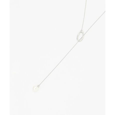 上品な光沢がフォーマル感を高めるパールをチェーンでつないたネックレス。