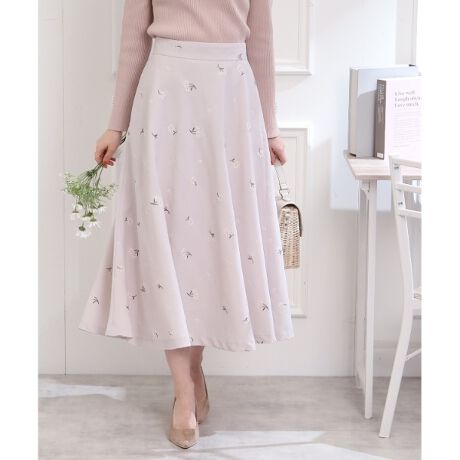 【春の訪れを感じる、小花刺繍】エンブロフルールフレアスカート
