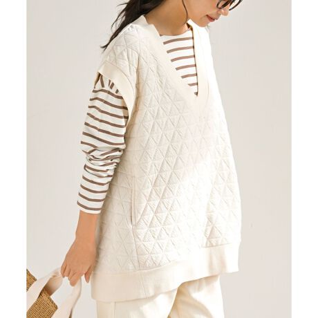 コーデのポイントにもなる三角のキルティングが薄手ながらも暖かくご着用いただける1枚になっています。