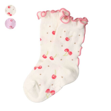 靴下は送料合わせにもピッタリです。対応サイズは14cm(13〜15cm)、17cm(16〜18cm)、20cm(19〜21cm)です!足裏にお名前を書く欄があります!フリルデザインに女の子に人気のチェリー柄の靴下、ソックス。【アイテム】 雑貨 カジュアル お洒落 オシャレ かわいい 可愛い 普段着 デイリーウェア お出かけ 子ども こども 女児 女の子 ガールズ キッズ ベビーサイズ トドラーサイズ 幼稚園 保育園 小学校 通園 通学 小学生 遠足 旅行 2022年秋冬物新作 丸高衣料 小物 さくらんぼ 果物 フルーツ ホワイト 白色 ラベンダー 薄紫色 キッズフォーレ