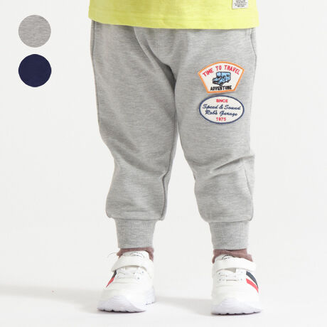 トレーナーよりは薄手、Tシャツよりは厚手のミニ裏毛素材が丁度いい。ストレッチもきいているので履かせるのも楽ちんで、動きやすそう!!抜け感のあるコーディネートが楽しめる裾リブデザインのスウェットパンツ。ロゴと車のワッペンがアクセントになっています。【アイテム】シンプル ベーシック 無地 カジュアル お洒落 オシャレ かっこいい かわいい 可愛い 普段着 お外着 お外遊び着 デイリーウェア お出かけ着 ロング丈 長丈 長ズボン フル丈 ロングパンツ ボトムス 子ども こども 男児 男の子 ボーイズ キッズ ベビーサイズ トドラーサイズ 幼稚園 保育園 小学校 通園 通学 小学生 2023年春物新作 丸高衣料 グレー 灰色 コン ネイビー 紺色 カー クレセント