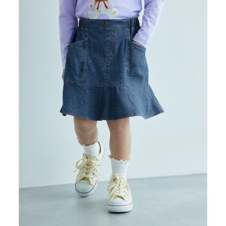・裾フレアの切替えが可愛らしいデニムスカート。