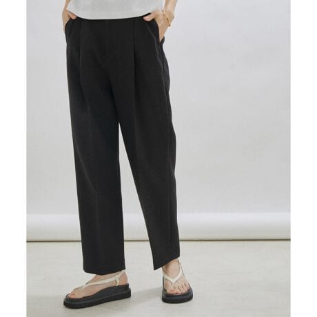 ゆとりがありながらもフロントにタック・センタープレス入りで細見えする1枚。
