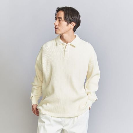 スウェット感覚で一枚着としても着応えのある、厚手のワッフル生地のポロシャツです。