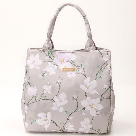 上品な飽きの来ない花柄で、しっとりとやや光沢感のある上質な生地です。持ち手はクッション材が入っており、腕に食い込まず痛くないです。