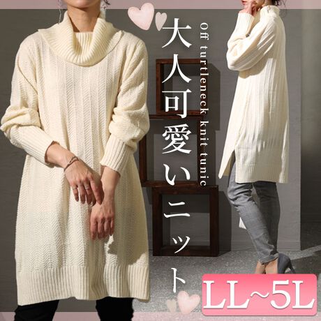 【大きいサイズ】 オフタートルネックニットチュニック 大きいサイズ レディース チュニック 長袖 冬