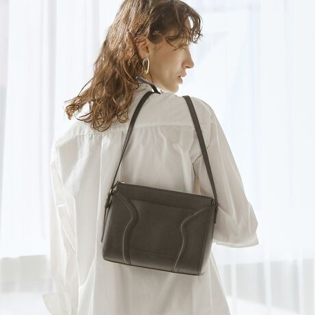 オールレーザーで高級感があり、畝のような肉盛りをアクセントにしたポシェット。