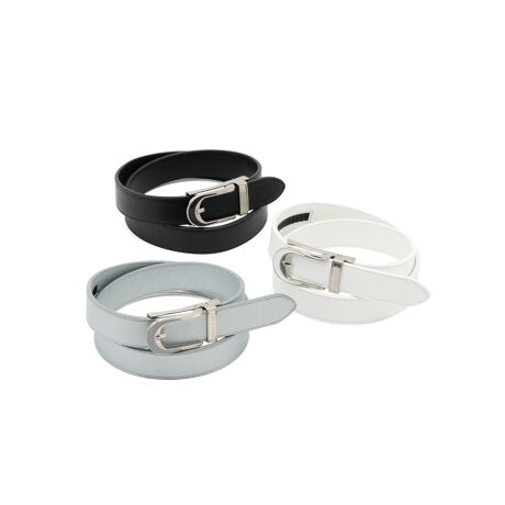 カーブを描くバックルが女性らしく、調節が容易におこなえるセレーションベルトです。