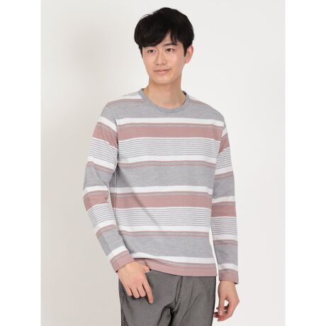 主役級の存在感を発揮してくれる、クルーネックの長袖Tシャツです。ワイドピッチのパネルボーダーで、春らしい爽やかな印象に仕上げています。一枚で着るのはもちろん、ジャケットやシャツ、ベストのインナーとしても便利なアイテムです。