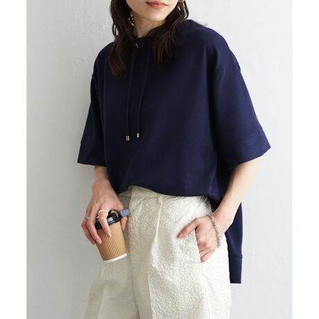 パーカー風に着られるカジュアルライクな5分袖プルオーバー。
