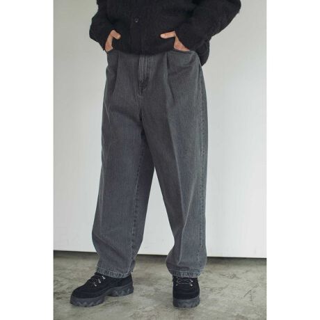 ボリュームのあるワイドシルエットながら、ウエストのプリーツデザインなどスラックス仕様にすることで上品な印象に仕上げたワイドデニムパンツ。