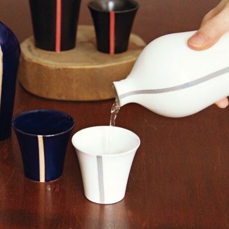 スタイリッシュな形状に凛とした1本線が印象的な酒器。