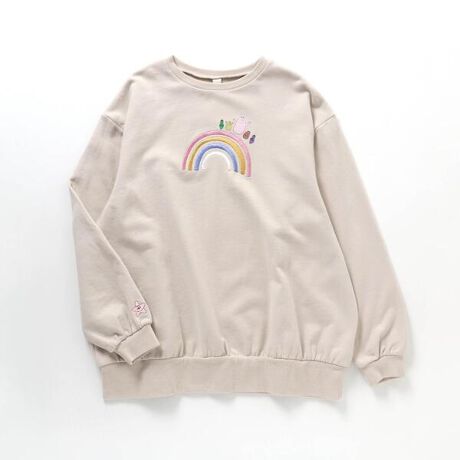 ベージュは刺繍で表現した立体的な虹の上にバーバパパファミリーがなかよく並んでいるデザイン!お揃いの大人用トレーナーとリンクして着たとき掛け合いになるバックプリントにも注目です!!アイボリーは、フェルトワッペンで表現したふわふわやさしいバーバパパとカラフルな子どもたちがプリントされたデザインになっています。親子でリンクコーデをお楽しみください♪
