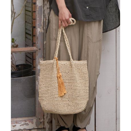 着こなしに季節感を添えるペーパー素材のトートバッグ。