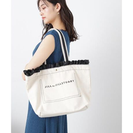 デイリーユースに使えるフリルトートバッグ(大)。上部のフリルディテールが可愛らしいポイントになります。口元が大きく開くので、中身が見やすく収納しやすいデザインです。大きいサイズなので、日常からお稽古、ジムなどにも活躍します。※撮影時照明の関係により、色味が違って見える場合がございます。またパソコン・スマートフォンなどの環境により、若干製品と画像のカラーが異なる場合もございます。予めご了承ください。商品の色味は、商品単品画像をご参照下さい。※商品画像はサンプルのため、色味やサイズ等の仕様に変更がある場合がございますので、予めご了承ください。※この商品は、素材の特性上激しい運動や極度な力が加わると、縫い目が開いたり目寄れ(織り糸が滑り、縫目が開く)する性質を持っています。ご着用の際はご注意ください。