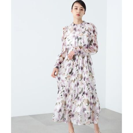 春ムード叶えてくれるホワイトリリープリントを施したワンピース。軽やかでシアーな素材にホワイトリリープリントが着映える一枚。肩のパフも落ち感のある素材でドレープ感がつき、袖口のギャザーとも好相性。ウエストはゴムシャーリングで着心地よく、スカート部分は細かく消しプリーツをいれて足元を軽快に演出します。トレンチコート、ライダースジャケットを羽織るスタイルもおすすめです。※撮影時照明の関係により、色味が違って見える場合がございます。またパソコン・スマートフォンなどの環境により、若干製品と画像のカラーが異なる場合もございます。予めご了承ください。商品の色味は、商品単品画像をご参照下さい。※商品画像はサンプルのため、色味やサイズ等の仕様に変更がある場合がございますので、予めご了承ください。