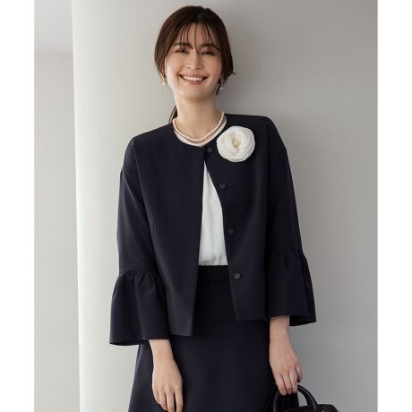 ■デザイン立体的なデザイン袖が、きちんと感の中にもスウィートモードさを感じさせる洗練された印象のジャケット。見た目はすっきりさせながらもややゆとりのあるデザインで、トレンドのボリューム袖のインナーの上からでもストレスを感じることなく着用できるのも嬉しいポイントです。こだわりのコンパクトな着丈は、スカートはもちろん、パンツやドレスとの相性も良く、羽織るだけでスタイリッシュにみせてくれます。セットアップとしても、単品ジャケットとしても活躍してくれるアイテムです。
