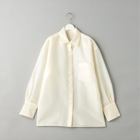 オーガンジー素材を使用したレギュラーカラーのオーバーサイズシャツ。