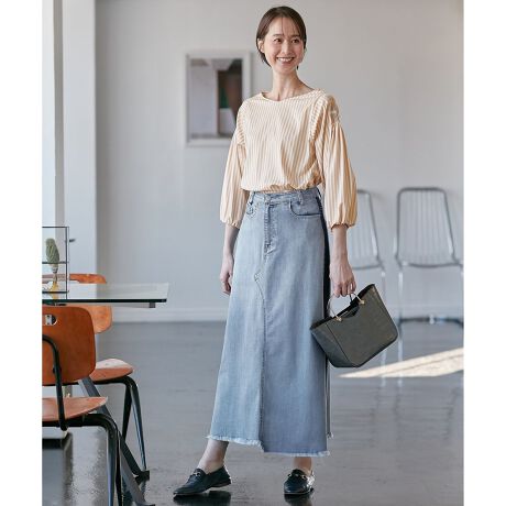 定番人気シリーズのUSUKARU DENIMにスカートが登場!■デザインウエスト周りはすっきりとさせ、裾にかけて程よく広がるシルエットのデニムスカート。裾の切りっぱなしと段差のカッティングがアクセントになり、トップスを選ばず合わせやすい1着です。ライトインディゴバイカラー(974)はサイドに側章を入れ、加工で色差を出しすことで、上品で細見えも狙えます。定番のデニムから少しイメージを変えたい方にオススメです。■素材薄くて軽い「USUKARU」デニム。ストレスフリーな着心地で春~夏にかけて長く着用していただけるように拘った1着です。本格デニムの表情を表現しながら、ストレッチ性と軽さを実現。硬くてゴワゴワするデニムのイメージとは、かけ離れた着心地に仕上げました。接触冷感性を持った糸を使用しているので、春夏シーズンにおすすめです。■同素材アイテムノーカラージャケット(JKWMSS0208)ヴィンテージストレートパンツ(PRWMSS0208)