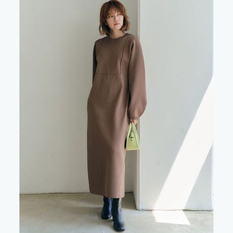 シンプルでもこなれ感のあるスタイリングを叶えるニットワンピース。