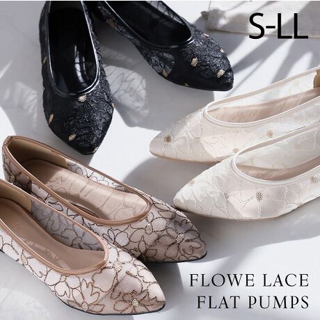 【26春夏新作】シアーフラワーレースフラットパンプス
