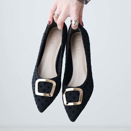 ・キラリと光るゴールドのバックルが映えるモチーフパンプス!