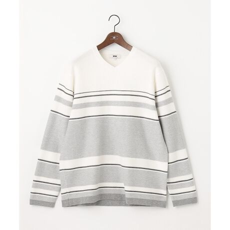 【キングサイズ・滑らかな肌触り】パネルボーダーVネックニット