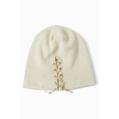 レースアップディテールを落とし込んだオリジナリティのあるニットキャップ。