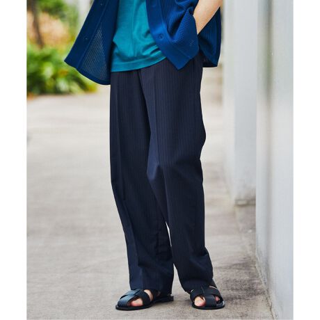 セミワイドストレートにし、モダンなシルエットに昇華しています。シャツなどをタックインして、ウエストの高い位置で着用することで美しいシルエットが活きるデザインです。