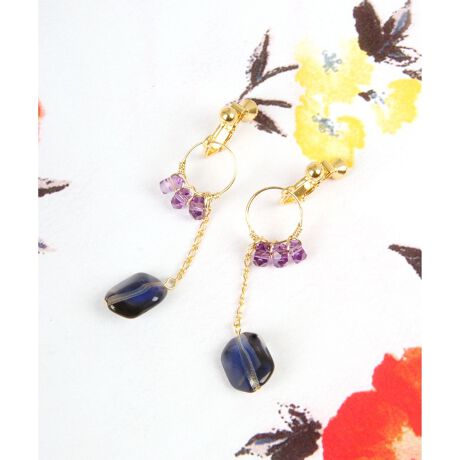【2月誕生石】アメジスト×チェコガラスイヤリング