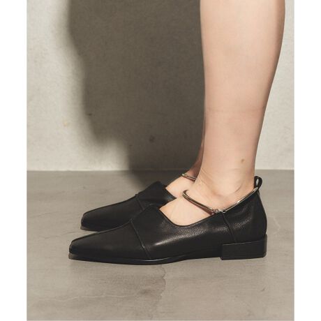 《予約》GRISE レザースクエアクロスシームアンクルフラット