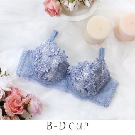 光沢のあるケミカルレースをカップ全体に使うことで、上品な世界観を演出しています。