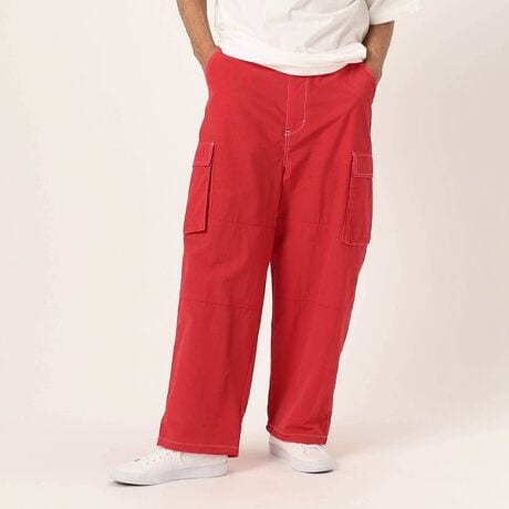 ナイロン素材のカラーカーゴパンツ。フラップ部分のVISION同色刺繍や配色ステッチ、裾はアジャスター仕様になっていますのでシューズやコーデに合わせてシルエットを調整できます。