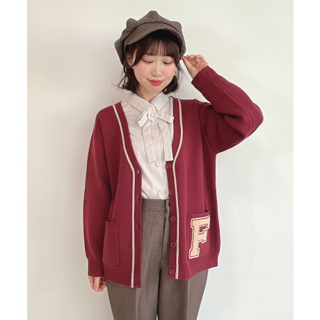 レタードワッペン腰丈ニットカーディガン【洗える】
