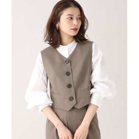 新しいトレンド・アイテムとして注目されているメンズ・ジレをベースにボタンのサイズや一枚でも着用できる浅めのネックラインとコンパクトな着丈にアレンジ。