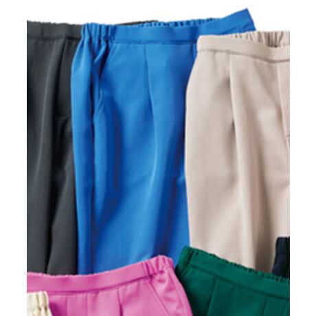 ポリエステル90% ポリウレタン10% ウエスト前脇〜後ゴム使い ポケット有