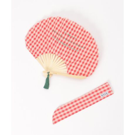 ギンガムチェック柄に刺繍のメッセージが入った扇子。
