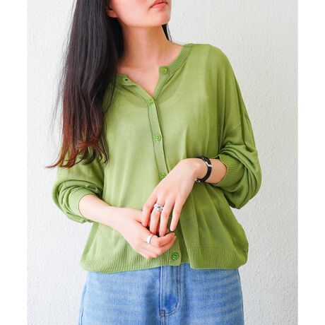 ベーシックカラーから、ビビットカラーまで揃えたシアー素材のカーディガン。