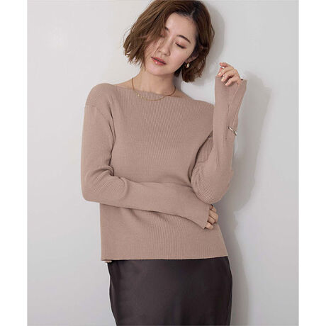 ボートネックでデコルテを綺麗に見せられるシンプルなリブニット。