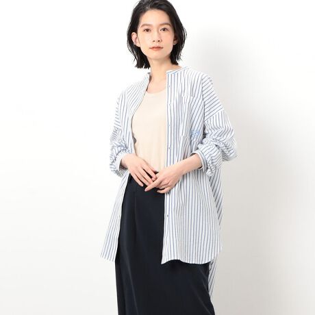 オーバーサイズのバンドカラーシャツ。
