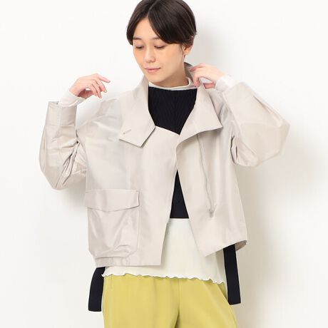 【洗える】ストレッチタフタ アシンメトリーカラーブルゾン