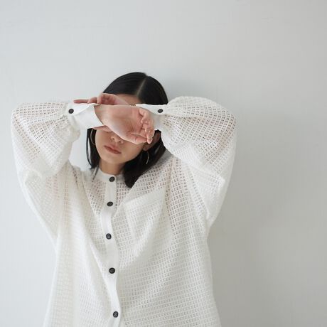 今季トレンドのメッシュ素材を使用したバンドカラーシャツ。