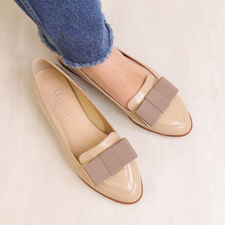 レディライクなグログランリボンモチーフで、きれいめな雰囲気に仕上げたエナメルローファー。