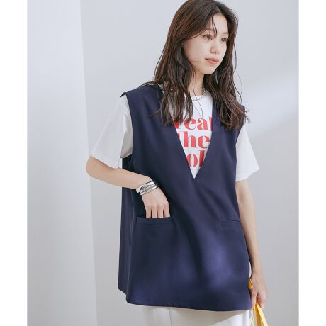 シンプルな深Vネックで着回し力の高いベストです。