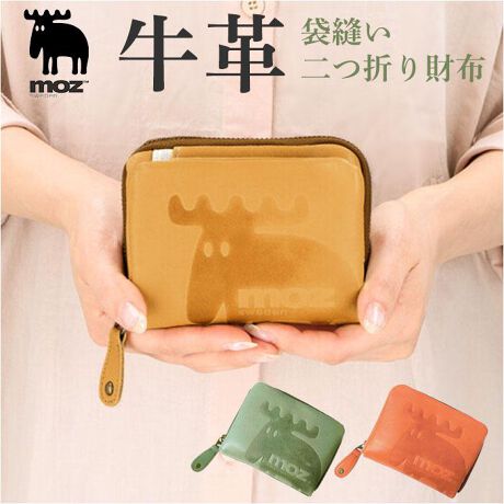 moz 財布 二つ折り モズ ZNWE-86000 通販 二つ折り財布 レディース 折り財布 折りたたみ財布 本革 牛革 ブランド レザー 革 ラウンドファスナー おしゃれ シンプル 大人 かわいい 可愛い ロゴ 北欧 ヘラジカ エルク メンズ ユニセックス 実用的 ギフト 女性用財布