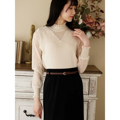 ビジュー付きシアー袖プルオーバー