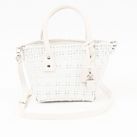 カゴ風に編みたてたミニバッグはショルダーもついてるのでアクセサリー感覚で